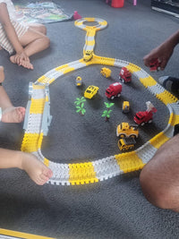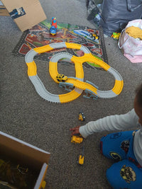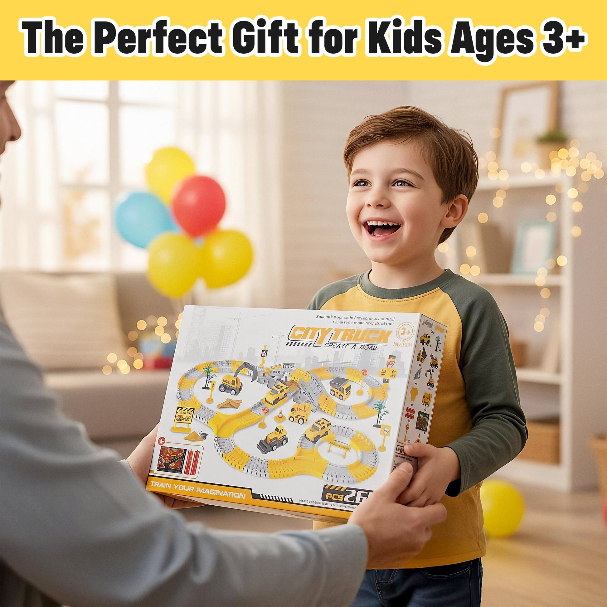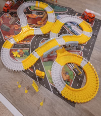 This set comes with mini construction trucks that bring the play scene to life. Kids can load, haul, and race their vehicles around the track for hours of immersive fun.