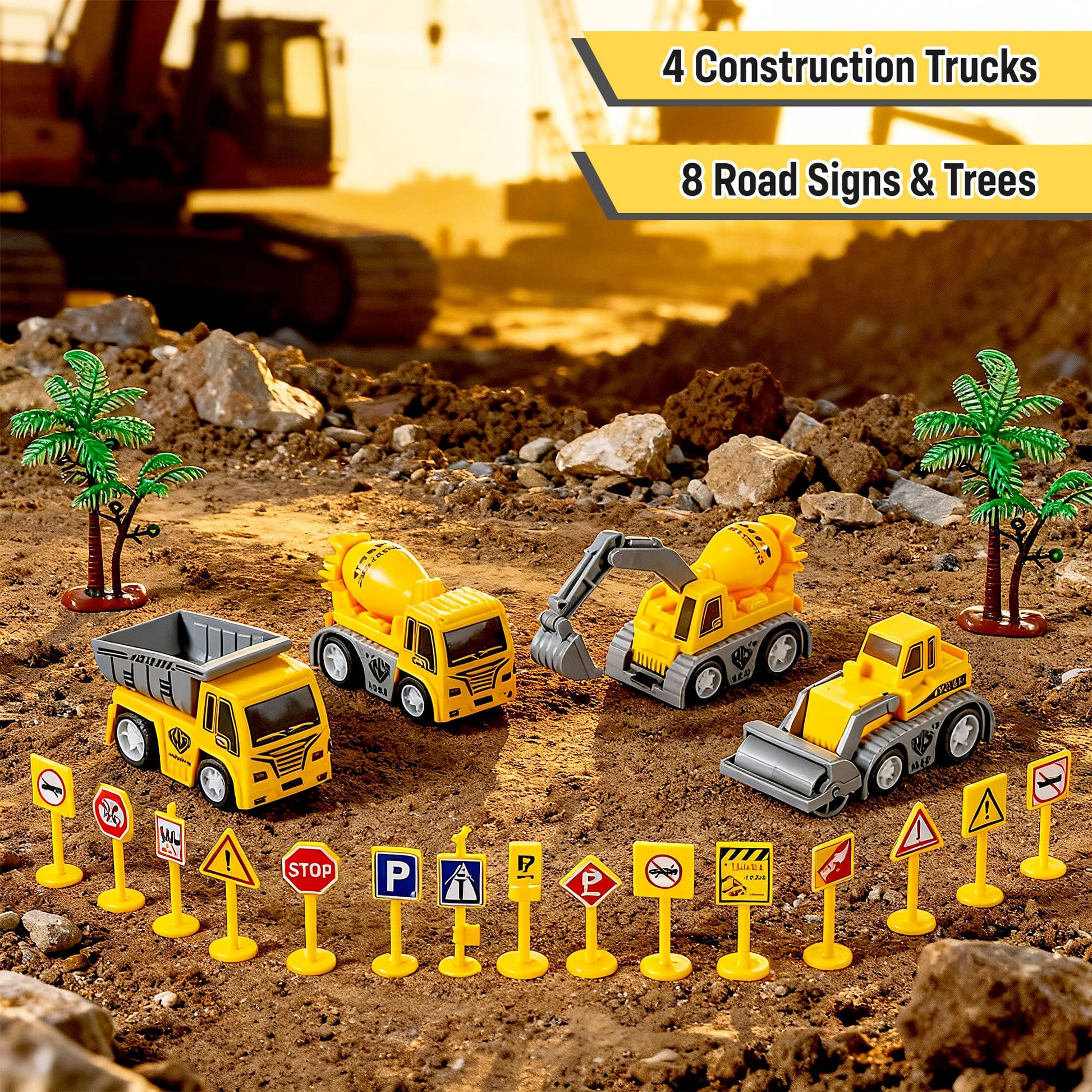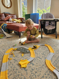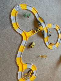 Add Accessories – Place the construction trucks, road signs, and trees to bring your track to life.