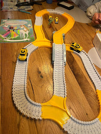 Power the Cars – Insert the included AA batteries into the electric cars, switch them on, and watch them zoom around the track automatically.