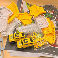 The raised bridge pieces add thrilling ups and downs to the track, making car races even more exciting. Children love watching their vehicles zoom over bridges and underpasses, adding a realistic construction zone feel.