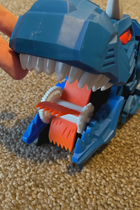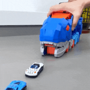 Set Up – Place your toy cars in front of the Dino’s mouth and roll it forward to watch it chomp them up.