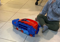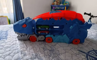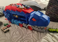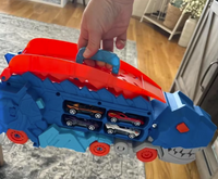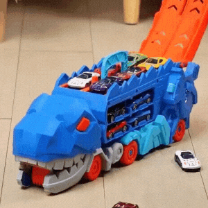 Watch it chomp, store, and launch cars in an epic race of speed and fun. Kids will love seeing their cars get “swallowed” and shoot out the back for nonstop action and imagination!