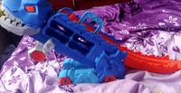 Transforms – Switches easily from a car-chomping dino to a high-speed race ramp.