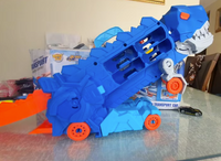 No need to retrieve the cars—this dino spits them out the back, ready for the next round!