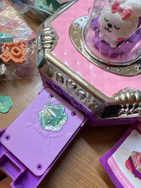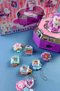 The kit comes with over 153 pieces, including molds, charms, beads, rings, keychains, stickers, and the jewelry-making machine for endless creative play.