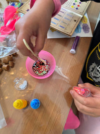 Children get hands-on with colorful powders, beads, and glitter as they fill their potion bottles. Each step brings excitement as ingredients swirl together, making every potion unique and full of wonder.