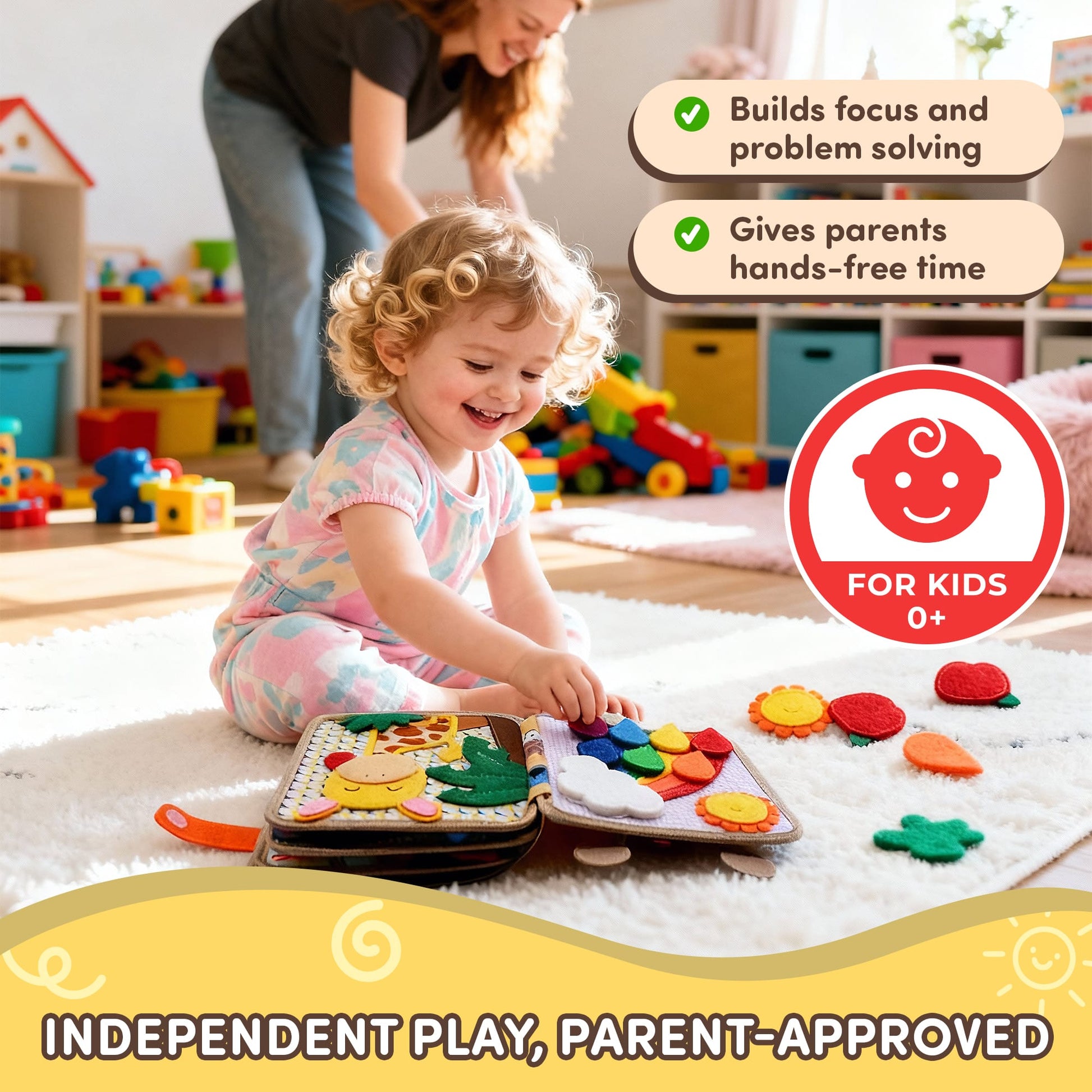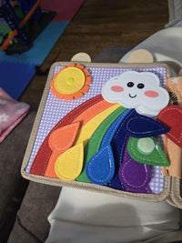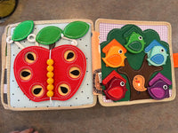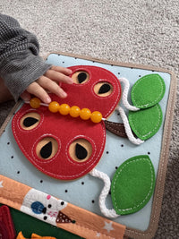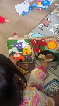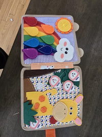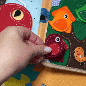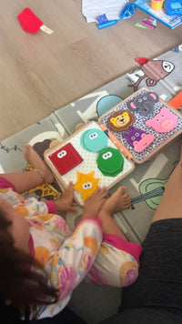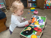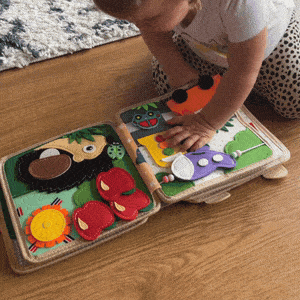 The Busy Book supports fine motor skills, color and shape recognition, problem-solving, focus, counting, and creative storytelling. It also encourages independent play.