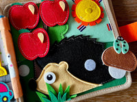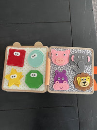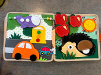 Open the busy book and explore each interactive page.