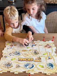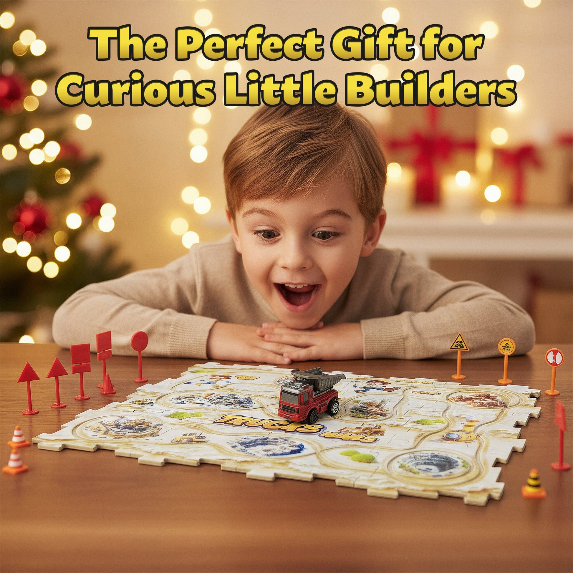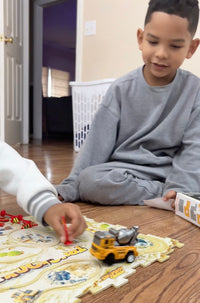 The Jigsaw Puzzle Car Track is a fun and educational playset that lets kids build their own racetrack adventure! With 12 interlocking puzzle pieces, little builders can create endless track designs that boost creativity and problem-solving skills. The truck drives itself around the track, no remote needed for nonstop, screen-free fun!