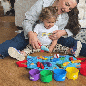 This fishing set helps kids build fine motor skills, hand-eye coordination, color and number recognition, sorting, and early counting skills.