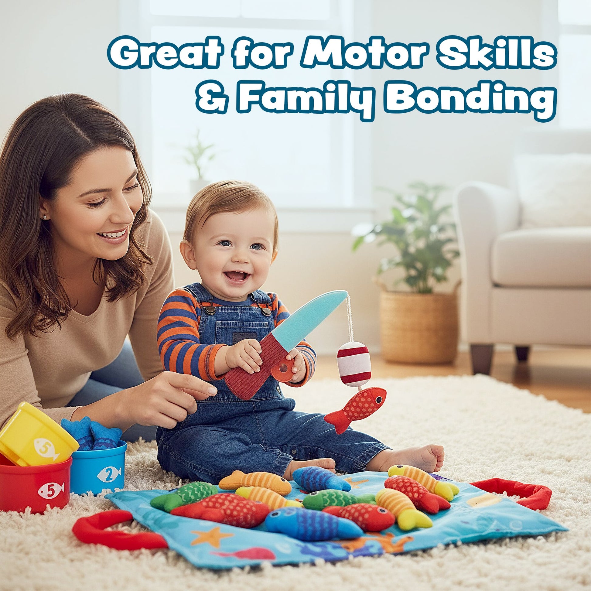 Interactive Fishing Play - Kids use a magnetic rod to catch colorful plush fish, turning playtime into hands-on learning.