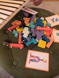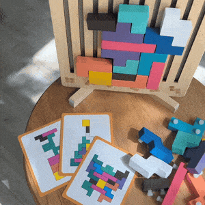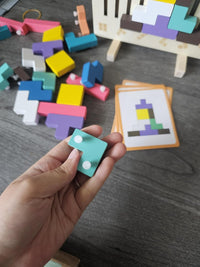 Each card presents a unique shape or pattern for kids to solve. With multiple difficulty levels, children can start easy and work their way up to more complex builds.