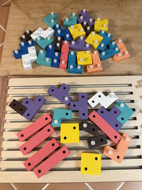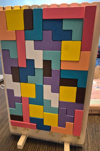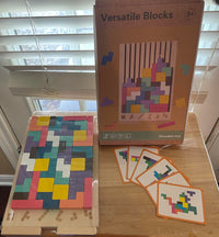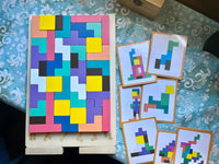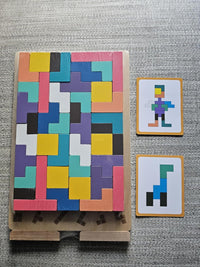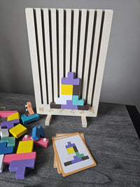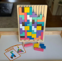 Each set comes with a wooden stand, colorful puzzle blocks, and multiple picture challenge cards for guided play and endless variations.