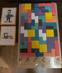 Place the Blocks – Drop or arrange the colorful wooden pieces to match the card.